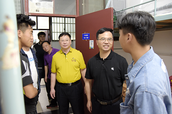 本网讯 5月10日晚,党委书记陈弘和党政办、学工部、相关学院领导走访了荷园、松园、桃园学生公寓,深入了解同学们的思想动态及学习情况。