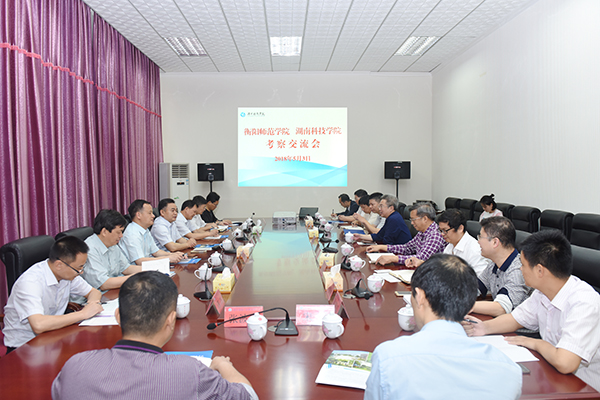 本网讯 5月3日上午,衡阳师范学院校长皮修平一行来校调研交流。党委书记陈弘,校长曾宝成及校领导郑山明、程智开和相关部门负责人会见。