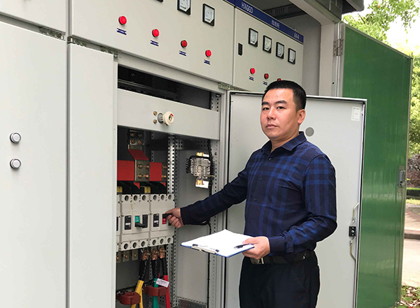 “认真做事,老实做人”,这是周宏坤从事学校后勤工作14载来坚守的做人处事原则。1999年开始从事电力工作,从一无所知的行业助手到掌握精炼的技术能手,他说道“干一行,咱就爱一行。”2003年入校至今,二十四小时待命,三百六十五天运行。周宏坤一边点着墙上密密麻麻的水电路线规划图,一边说道:“能坚持每一天都做好自己的本职工作,就是我最大的责任。”严谨踏实的工作态度,勤劳肯干的工作热心,为学校发展进步而贡献着自己的力量,他风雨无阻。