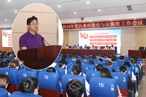 副校长宋宏福宣读2016-2017学年“优秀辅导员”和“优秀班主任”表彰决定、2017 年度市直机关基层党组织“五化”建设考核验收情况的通报。纪委书记彭立威作了题为《以永远在路上的执着 不断推动全面从严治党向纵深发展》的纪检监察工作报告,副校长吴小林作了题为《以“奋进”音符谱写“平安”之歌》的综治维稳工作报告。会议还书面印发了《2018年党建工作报告》《2018年宣传思想工作报告》《深入推进习近平新时代中国特色社会主义思想进教材进课堂进头脑行动方案》等。