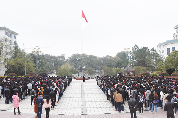 本网讯 3月6日清晨,学校在文化广场举行新学期首次升国旗仪式,党委书记陈弘、副校长程智开,各学院党总支书记、院长和党总支副书记以及辅导员老师和全校千余名学生共同见证这个庄严而神圣的时刻。