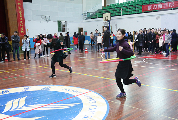 趣味运动会包含袋鼠跳接力、托乒乓球接力跑、两人三足接力跑、转呼啦圈接力跑四个项目。比赛现场欢声雷动,参赛选手斗志昂扬,观众热情四溢,大家个个反应灵敏,配合默契,大家你追我赶,争分夺秒,充分展现了女教师健康向上,充满活力的精神面貌。