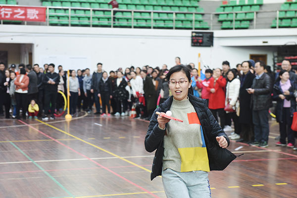 本网讯 3月8日下午,学校体育馆内笑声连连,欢呼阵阵,趣味横生,“三八”妇女节趣味运动会欢乐举行,吸引了来自全校各单位的300余名教职工参加,不少男教职工也纷纷热情参与助阵。