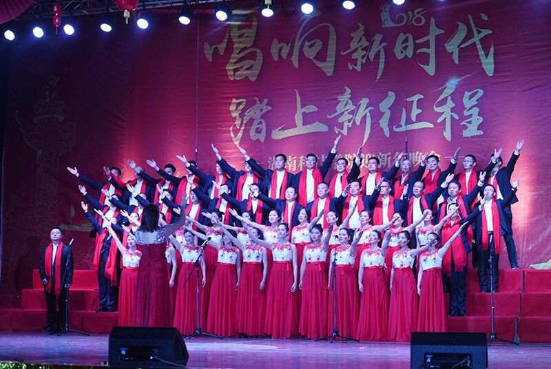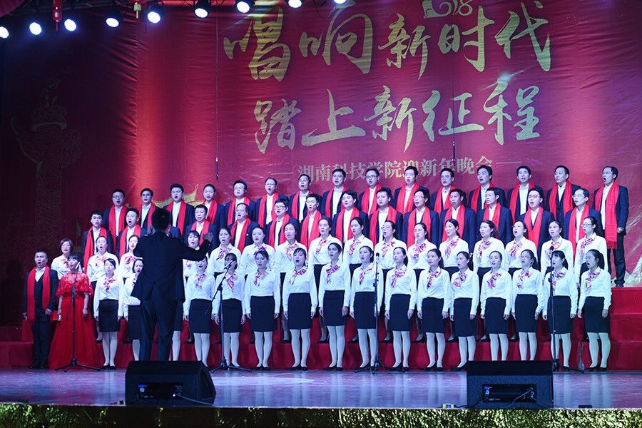 晚会在大合唱《歌唱祖国》、《潇湘之歌》中拉开序幕,全校700多名教职工组成11支代表队参加合唱比赛,歌唱祖国的繁荣昌盛,用歌声献上了对祖国的美好祝愿。《人民军队忠于党》、《同一首歌》等经典曲目的表演,以激昂豪迈的精神面貌激荡着现场师生的情感;《我爱你,中国》、《走进新时代》等歌曲,用铿锵坚定歌声唱出了当代中华儿女对祖国的深情热爱;《在太行山上》、《游击队之歌》《我的中国心》等精彩歌曲的不断上演,让大家重温了那段激情燃烧的岁月,再现了革命先烈威武不屈的民族精魂,让整场晚会气氛热烈、掌声雷动,深刻诠释我校“不忘初心立德树人,牢记使命创双一流”的思想内涵,充分展现了学校以团结向上的精神风貌迎接新时代的喜悦之情和坚定信念。