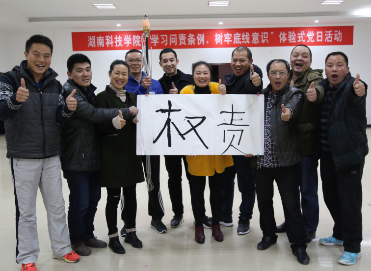 本网讯 12月12日下午,校纪委委员、组织部部长卢桂珍组织保卫处、体育学院等联系点的党员同志在潇湘大讲堂党校培训室举行“学习问责条例,树牢底线意识”体验式主题党日活动。