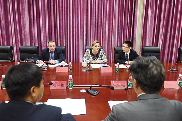 宋宏福对学校国际交流状况及两校在教育领域可能开展的具体项目方向向白俄罗斯国立文化艺术大学第一副校长阿琳娜作了介绍。宋宏福说,我校立足于建设一所特色鲜明、质量优良的地方应用型大学,注重学校教学质量,拓展国际交流目的在于借助国际优势教育资源提升教师的教育教学水平和学生的学识能力;在开展两校教师交流方面,可通过两校师生团互访、教师访学研修、合作培养博士等三个项目来促进合作交流;在开展两校学生交流方面,可通过学分互认、实践体验周、硕士联合培养等三个项目来促进合作交流;两校师生还可通过共同参加竞赛或活动来加强沟通与交流;外国专家或专业人士可通过交流来我校从事俄语、声乐、器乐、舞蹈等专业的教育教学。