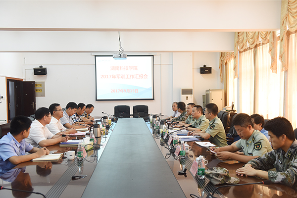 本网讯 9月15日上午,省军区战备建设局副团职参谋汤光强率省军训工作检查组一行来校指导工作。校党委书记陈弘出席会议。省军区战备建设局副营职参谋许超、永州军分区战备建设处处长张玉龙、永州市教育局副局长杨兰荣、零陵区武装部部长王建武、永州军分区战备建设处参谋管继平、零陵区教育局长唐天光、零陵区武装部政工科长刘昌昊等参会。
