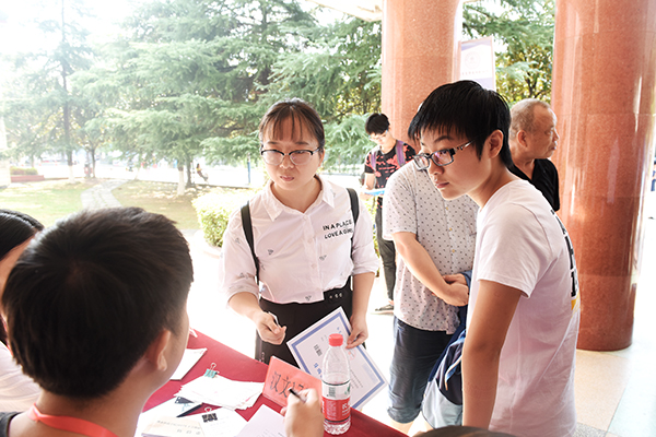本网讯 新生入学之日,有一对来自株洲的邻家姐妹,大姐姐叫谢敏,22岁,小妹妹叫王亦琼,19岁。她们被同一专业汉语言文学系录取。只是时间相差了三年。在机缘巧合下,大姐姐作为科院的老熟人引领着小妹妹去报名。