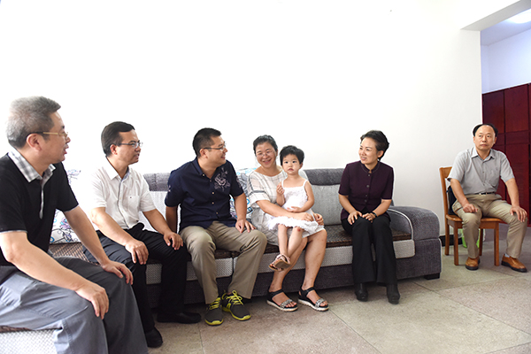 “老师就像蜡烛一样,点燃了自己,照亮了他人,温暖了学生,助力了地方经济和地方文化事业的发展,在教师节来临之际,祝你们节日快乐!”在尹业师家里,李晖与尹业师、陈华海夫妇并排而坐,促膝交谈,并拉着尹业师母亲的手,亲切地嘘寒问暖。尹业师、陈华海夫妇分别毕业于美国马歇尔医学院和中国科学院,主要从事微生物代谢产物与医药用生物资源研究开发,是学校新一轮实施人才工程从东部地区引进的高层次人才。得知这一情况,李晖高兴地对这对海归博士夫妇说,永州大有可为,非常需要人才,欢迎你们来永州干事创业,希望你们把永州当成自己真正的家,将所学用于教育和科研,把知识和智慧与产、学、研结合起来,在大健康产业方面做出成绩来,建设新永州,造福老百姓。