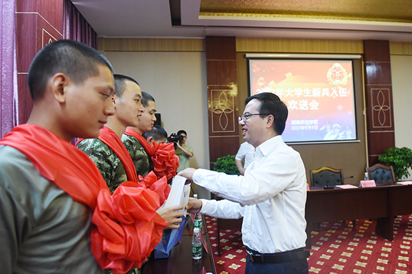 欢送会上,武装部、学工部部长唐华山介绍了我校征兵工作情况。今年我校共有30名大学生顺利通过体检、政治考核,如愿入伍。其中,7名应届毕业生,23名在校学生。