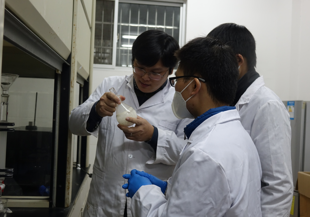 在平时的工作中,他都抱着刻苦钻研、力求完美的态度,在科研问题上主动“迎战”,积极从实验中去发现问题、剖析问题,希望能以全新的视角做出客观分析,从而进一步深化研究,寻找解决办法。袁霖说,“我在科研中所能感受到的最有趣的事情就是看到学生们能通过自己的努力把学到的知识转化为能力的那一刻,作为老师,我们要为学生提供建议而不是控制学生的思想。”他常与研究团队的学生们在一起讨论探究合成路线,以一个目标产物为中心,找出文献资料的关键然后引导学生们以蛛网形式发散思维,找到最佳的路线。“有时候和袁老师做实验会做到很晚,11点多是很正常的事儿,不知不觉逸夫楼有时候都关门了。”化学1401班的刘征同学说,“很感谢我大学的这位启蒙之师,是他带领着我从对实验一片茫然到越来越自信。”在袁霖的指导下,刘征的实验能力大大提高了,收获了学校科创节一等奖,并被推荐参加省“挑战杯”大赛荣获三等奖。