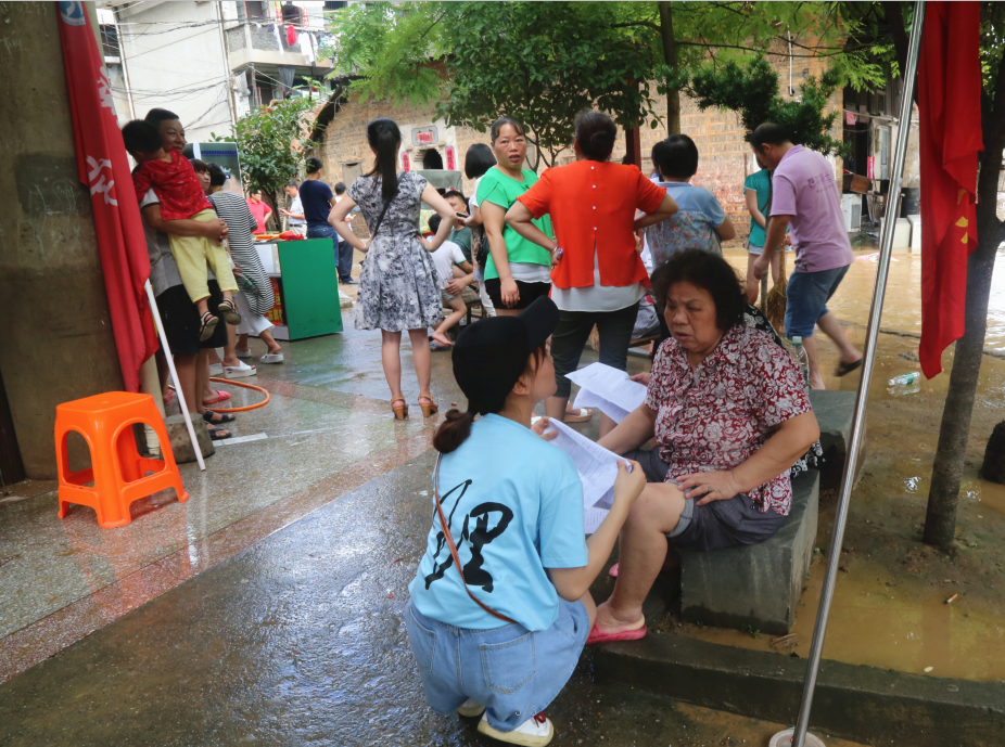 “7.2”洪灾过后的大西门社区,地上裹着厚厚的淤泥,墙角、路傍、沟畔等堆积着许多被洪水冲击集聚的垃圾废品。 “理学星空服务调研团志愿者”一行20多人于7月3日下午2:30早早赶到大西门社区,在社区负责人的带领下,他们来到正大街、小西门、鼓楼巷、总督巷等大街小巷开展志愿服务活动。大家来不及休息,迅速投入到淤泥清理,防疫知识普及,社区受灾家庭卫生清理等工作当中。志愿者们不惧脏累,有的拿起扫帚和铲子清理灾后卫生死角,有的帮助受灾家庭搬运电冰箱、电视机沙发等物品;有的到群众家里发放宣传资料与群众宣讲洪灾过后的疾病防预工作;有的把大水浸泡的旧沙发、被子、衣服一一搬走。
