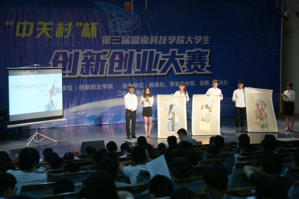 选手们自信满满、从容干练的介绍赢得了观众的阵阵掌声。“去年我们的销售额达到了线上25万线下20万的成绩。” “地瓜博士”区分传统的地瓜,运用激光切割技术和VR虚拟技术,与地方旅游特色相结合,糅合当地习俗特点,使之具有风俗化,产品在不断的研发升级中,精致的外观和深厚的文化底蕴让“贫穷”的地瓜一跃成为送礼佳品。“你们这个创意很不错,还能带动旅游产业发展,如果能将3D打印技术运用到其中,这个产品的含金量会更大。”专家评委给出自己的建议。“绘世界”手绘作品的展示引起比赛的一个小高潮,现场观众情不自禁地发出阵阵惊叹,惊叹于美术学院选手的精湛画艺,银杏茶、湘科节能材料研发中心等项目也凭借其创意和理念也纷纷获得评委老师和观众的一致好评。