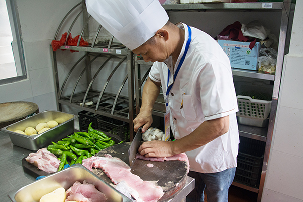 来自学校五个食堂和酒店的十余名厨师精英拿出自家的绝活参加角逐。比赛分白案组和红案组两个组,要求选手在规定时间内完成指定菜和自选菜制作,做到口味纯正、质感鲜明、色泽美观、经济实惠、营养卫生。比赛中,选手们个个精神饱满、斗志昂扬。“切、煎、炒、炸、烩、蒸、爆、溜” 红案组的师傅们样样拿手,每道菜品都精心选材,用心烹制,手法娴熟。白案组的比赛同样精彩,师傅们精心制作包子、馒头等,五花八门,精彩纷呈。各个展台前挤满了观赏和品尝的师生。精致可口的菜肴为现场奉献了一场视觉与味觉的饕餮盛宴,引得在场师生连连拍照、竞相品尝。