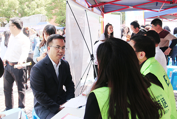 本网讯 为搭建毕业生与用人单位双选平台,促进学校与用人单位的交流合作,4月28日下午,“就业去哪儿”第二季大型校园公益活动永州站暨九游在线2017届毕业生爱心送岗专场招聘会在校举行,校党委书记陈弘、副校长程智开等深入招聘现场对毕业生求职情况进行了解并进行现场指导。