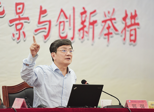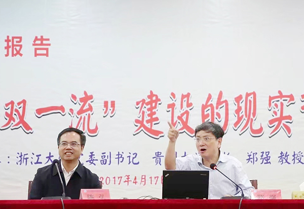 郑强以贵州大学近年来的发展为例,从办好贵州大学的动力与责任、贵州大学发展的理念与进展、关于“双一流”的若干思考、当今大学生思政教育若干热点问题的思考四个方面阐述了建设地方区域性高校的独到见解。报告中,郑强指出,“好大学与地区发展相得益彰,好大学是所在区域、所在城市的品牌,关乎一座城市生活的品位和地区人民的尊严”。他结合当前我国高等教育的现状,指出地方区域性高校的发展需要认清形势、凝聚人心、抓住机遇、创新发展,与所在地区发展紧密结合,靠学生誉校、学科名校、学者撑校、学术立校,以不懈的奋斗、改革、创新取得成效、赢得尊严,创造出地方区域性高校事业发展的新辉煌。