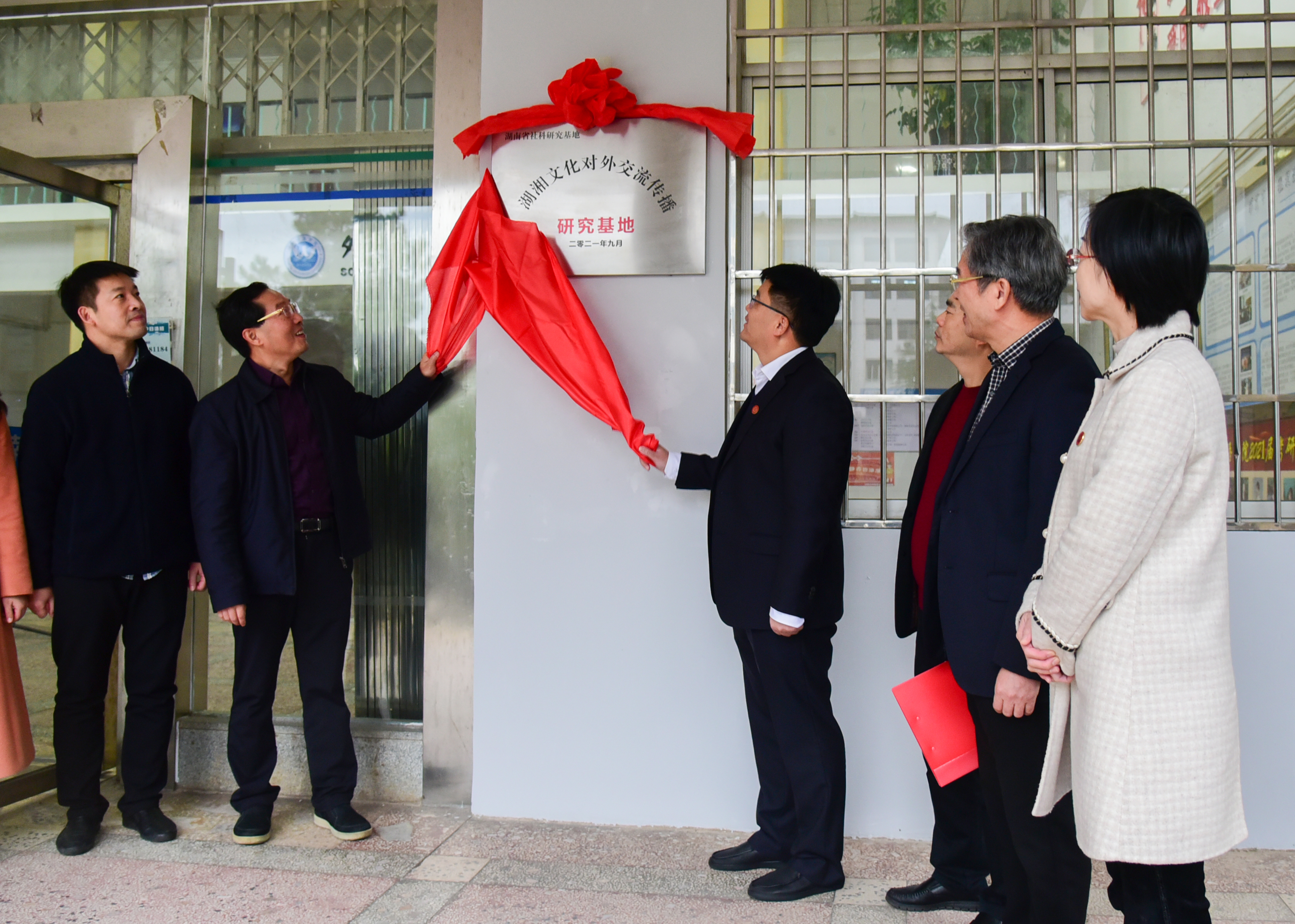 省委宣传部宣传教育处,学校党政办公室、宣传统战部、科技处、学报、外国语学院、文法学院、传媒学院主要负责人,湖湘文化对外交流传播研究基地全体成员参与揭牌仪式。