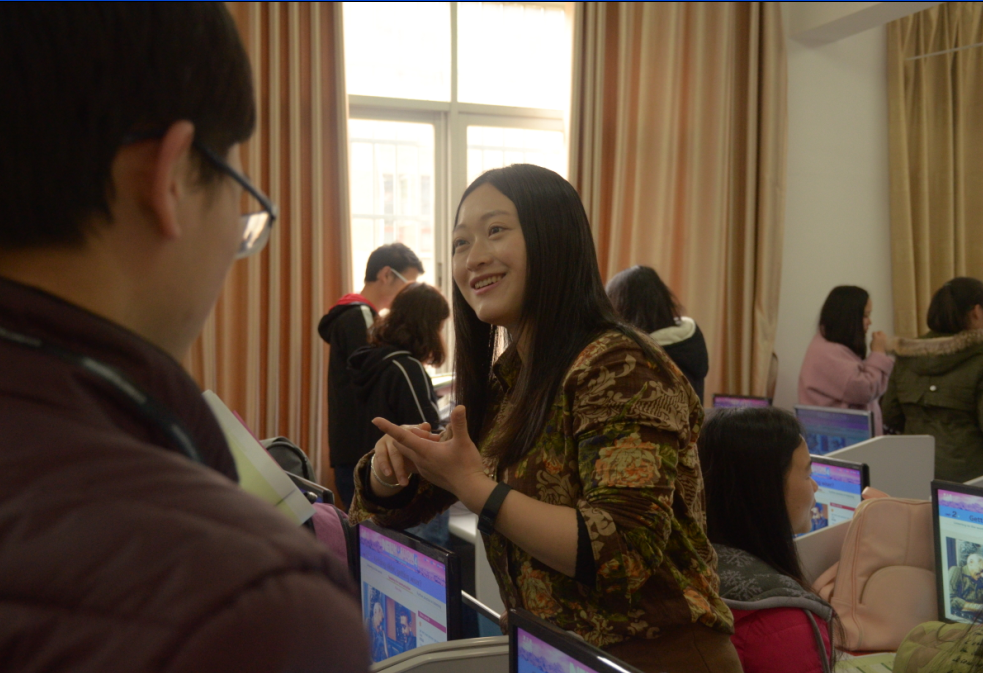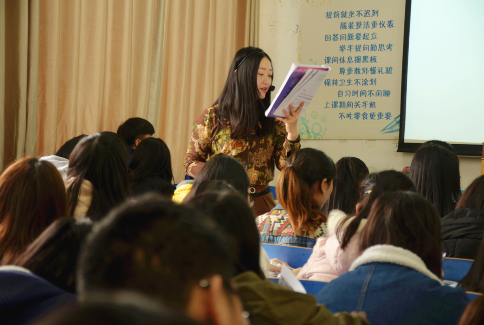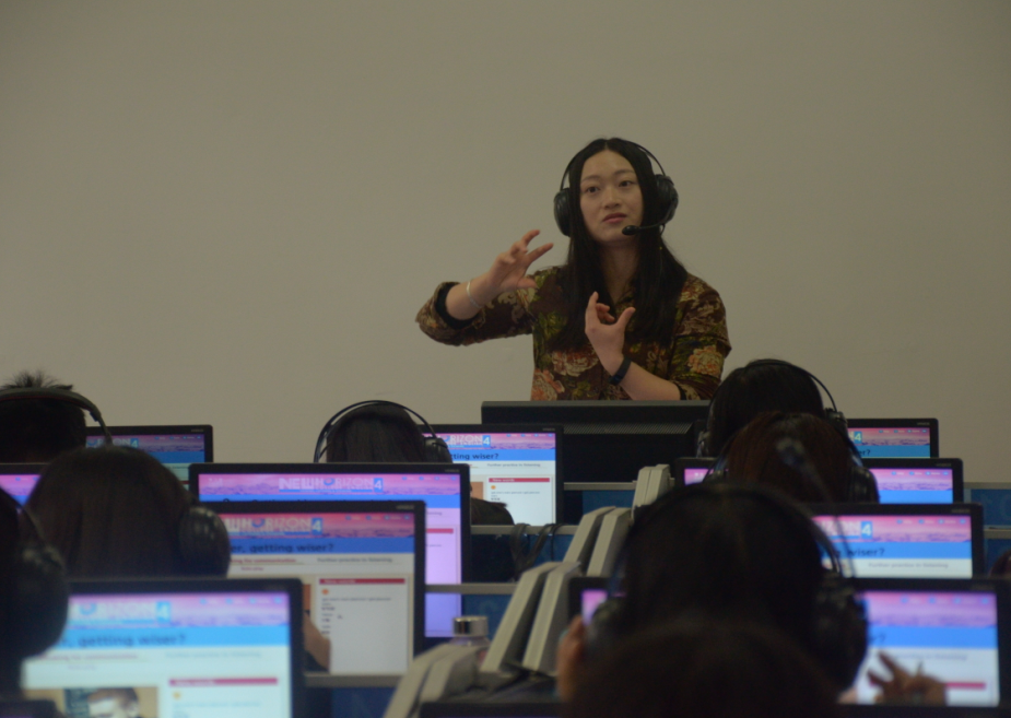 胡老师开始了自己今天的第二次授课——大学英语视听说课。