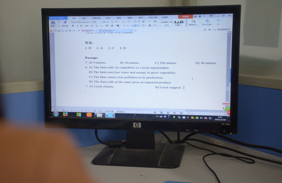 胡老师批改学生的四六级模拟考试试卷。