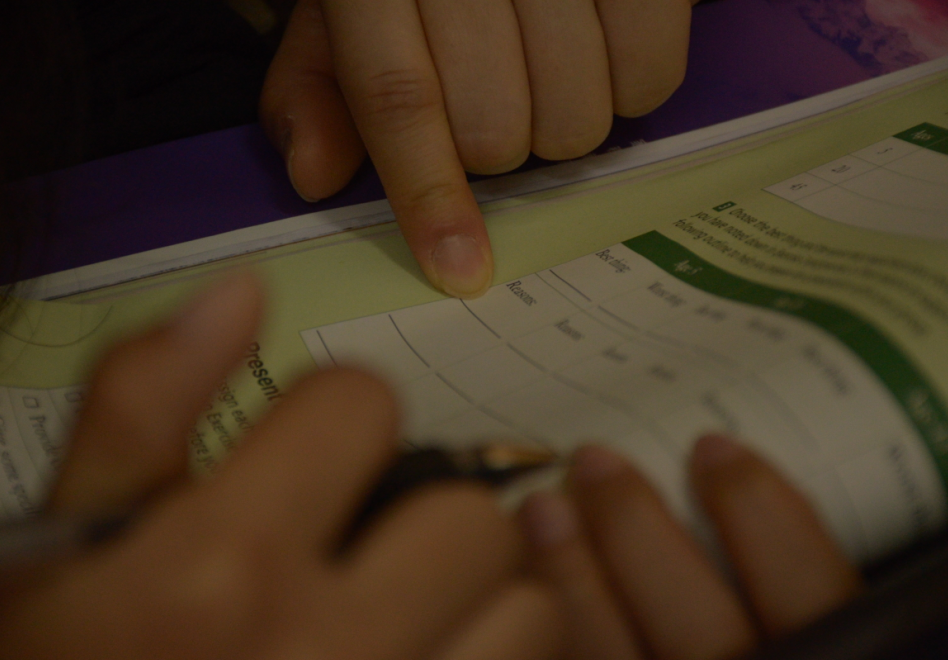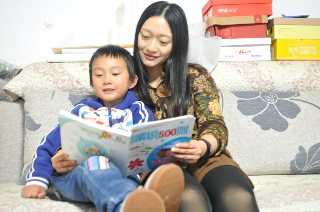 晚上回到家,胡老师陪伴儿子度过学习时光。