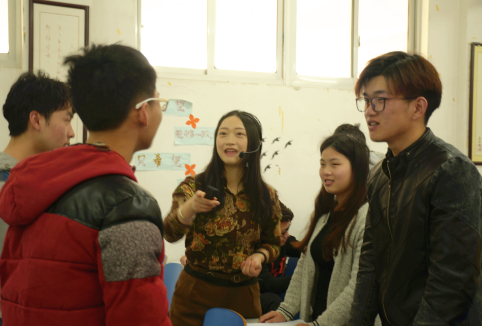 胡老师开始了自己今天的第一次授课——大学英语读写课。胡老师用启发式教学法带着学生们一起深度思考、理解课文,阅读过后给学生安排小组讨论任务,她也积极参与到小组的话题讨论中了解并指导学生的思路。