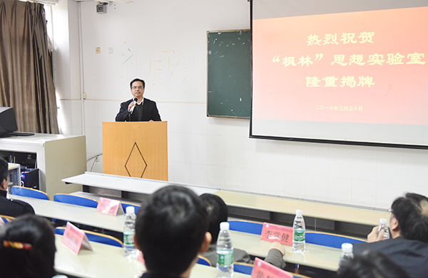 本网讯 3月30日下午,我校在逸夫楼大厅举行“枫林”思想实验室揭牌仪式。校党委书记陈弘、校长曾宝成及校领导唐艳明、李常健出席。仪式上,曾宝成与中石油东海燃气公司董事长、北京枫林公益基金会会长、北京校友会会长、80届化学专业校友张亚红为 “枫林”思想实验室揭牌。