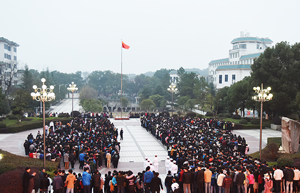 本网讯 隆冬时节寒意正浓,但阻挡不了我校师生对新年的美好期盼。1月3日清晨,学校隆重举行新年升国旗仪式,校党委书记陈弘、校长曾宝成及全体校领导出席升旗仪式,全校中层干部、机关工作人员、学生辅导员及教师代表、2016级全体学生4000余人共同度过了这一庄严时刻。