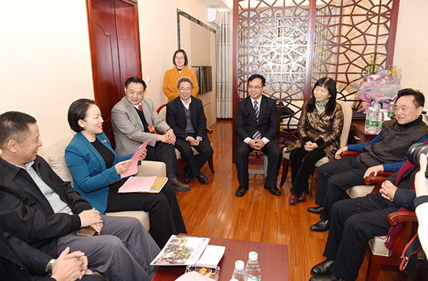 本网讯 1月8日晚,中共永州市委书记李晖一行来校,与亲临我校调研指导的湖南省人大常委会原党组副书记、副主任陈叔红,湖南省君子文化研究会会长李利君,湖南省社科院原院长朱有志,湖南省文化厅巡视员孟庆善,湖南省委组织部原副巡视员魏忠胜一行及我校党委书记陈弘、校长曾宝成进行了会晤。