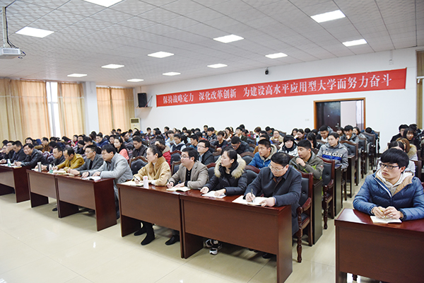 各教学学院学工负责人、辅导员及部分学生干部等认真学习和聆听了这堂重要的学习报告会。学工部部长唐华山主持学习报告会。