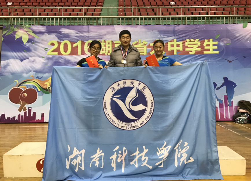 本次赛事由湖南省教育厅主办,湖南省学生体育协会执行,共有来自中南大学、湖南师范大学等在内的20余所高校的200多名运动员参加。我校女将苏阳阳和李颖在石峰老师的带领指导下,配合默契,冲进决赛,最终获得女双第二名,充分展现了我校运动员顽强拼搏的精神风貌。