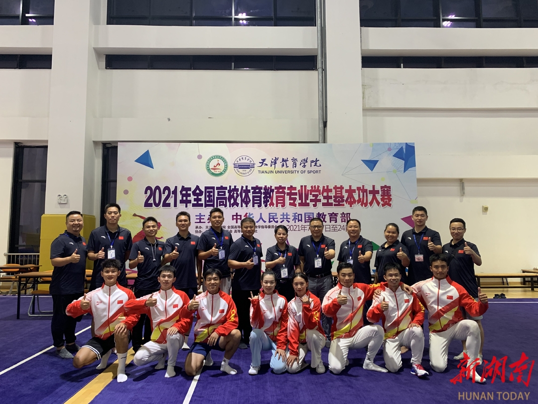 针对不同类型学科竞赛成立专门的教练团队,根据赛事项目分小组进行系统指导,将学科竞赛纳入实践教学与人才培养模式改革创新的建设中,与学生所学专业紧密结合、与学生专业核心技能培养紧密结合、与课堂教学紧密结合。同时,强化学生教学技能训练,积极开展师范技能比赛,形成“以赛带训、以赛促学、以点带面”的教学模式,通过层层的教学技能竞赛及训练,带动更多的师范生对教学技能进行实践训练,帮助学生更好地完成从师范生到准教师的角色转换。近年来,学院学生在各类体育赛事中屡获佳绩,获2019年省体育教育专业学生基本功大赛运动技能类团体一等奖、团体总分二等奖;2021年全国高校体育教育专业学生基本功大赛运动技能类团体二等奖、基础理论知识与教学技能团体二等奖、团体总分二等奖(全国第六名);2024年湖南省师范生课堂教学竞赛三等奖等等。