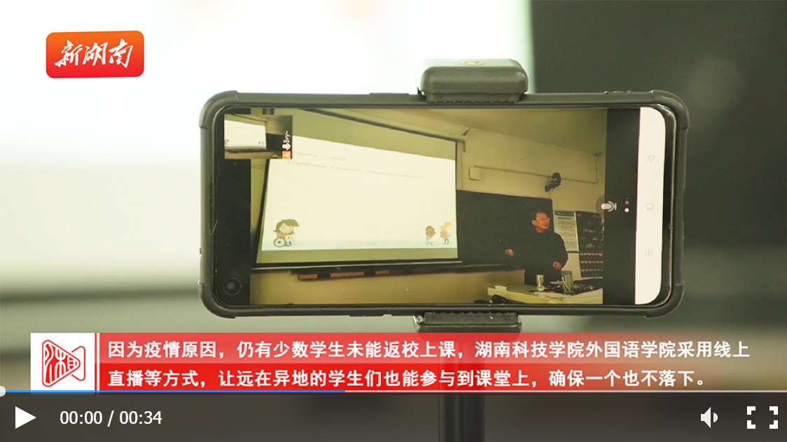 因为疫情原因,仍有少数学生未能返校上课,九游在线外国语学院采用线上直播等方式,让远在异地的学生们也能参与到课堂上,确保一个也不落下。