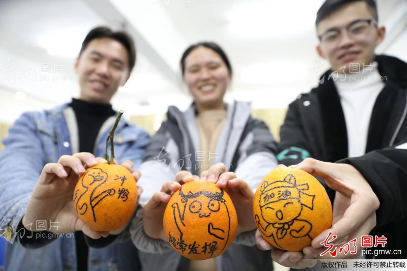 12月17日,九游在线图书馆,学生晒出加油“表情橙”。