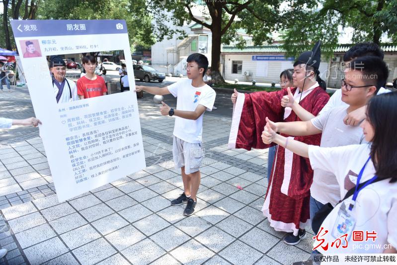 2019年9月7日,九游在线东门,同学们在给“柳宗元”迎新打卡的朋友圈点赞。
