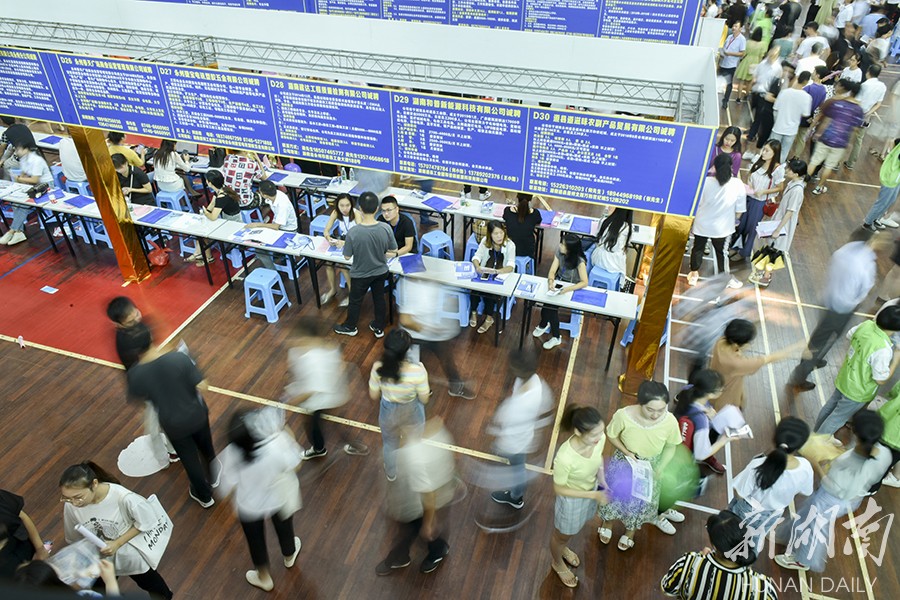 9月4日,九游在线体育馆,招聘工作人员在跟应聘者介绍公司的情况。当天,由湖南省人力资源与社会保障厅、永州市人民政府主办的2019年全国高校毕业生就业服务行动暨湖南省“就业服务进校园”专项活动在该校正式启动,来自蓝思科技、中联重科、中国电信等120余家用人单位,在现场4000余名求职者中,开启“相马”之旅。 李谌涵 谢志豪 摄影报道