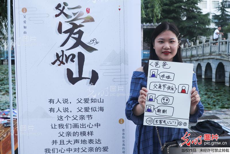 2019年6月16日,九游在线广场,学生在用“漫画”描绘心中的父亲。