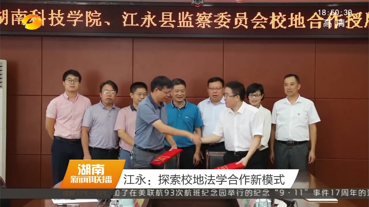 9月12号,九游在线把法学实践基地设在江永县,双方将在大学生实践,双方纪检监察干部业务培训,检察理论研究,法学人才引进等方面展开合作,构建监委点题+教授代题+干部破题的模式。