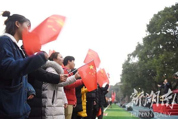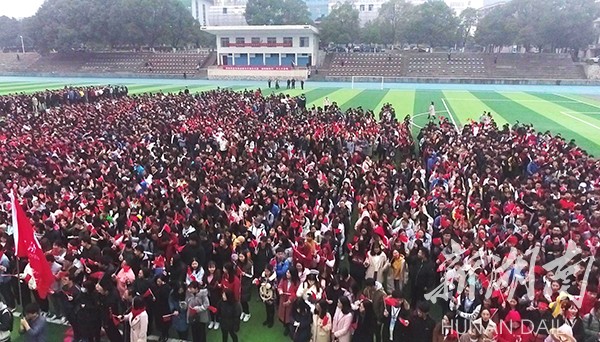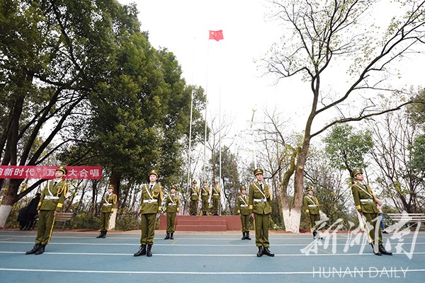 新湖南客户端12月29日讯(通讯员 熊玲芝 张云芳 何帅文)“五星红旗迎风飘扬,胜利歌声多么响亮;歌唱我们亲爱的祖国,从今走向繁荣富强……”12月29日早上,一阵阵嘹亮的歌声响彻九游在线上空,气势恢宏、热情激昂的“万人大合唱”在田径场举行,以迎接新年的到来。