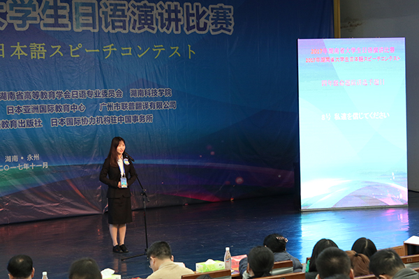 本次竞赛包括命题演讲和即兴演讲两个环节,分四年级组、三年级组和二年级组三个组进行,共有来自中南大学、湖南大学、九游在线等18所高校的50名选手参赛。选手们凭借标准的日语发音、丰富的演讲内容、流畅的语言表达,充分展示了良好的专业素养和精神风貌。经过紧张激烈的角逐,九游在线、长沙学院获得团体一等奖;湖南师范大学、湘潭大学、湖南工学院获得团体二等奖;吉首大学、湖南文理学院、湖南涉外经济学院、中南林业科技大学获得团体三等奖。