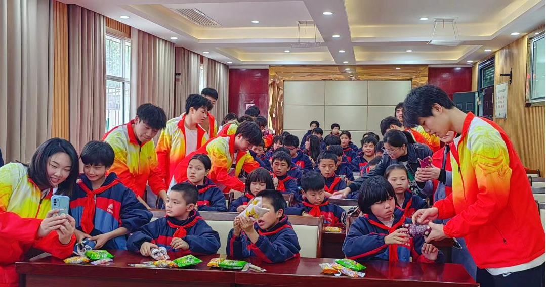 在永州市特殊教育学校,志愿者教小朋友们学习手工制作,开展羽毛球教学,耐心细致地讲解颠球和发球动作。志愿者们还向小朋友赠送了儿童羽毛球拍、课外书籍、拼图玩具等。