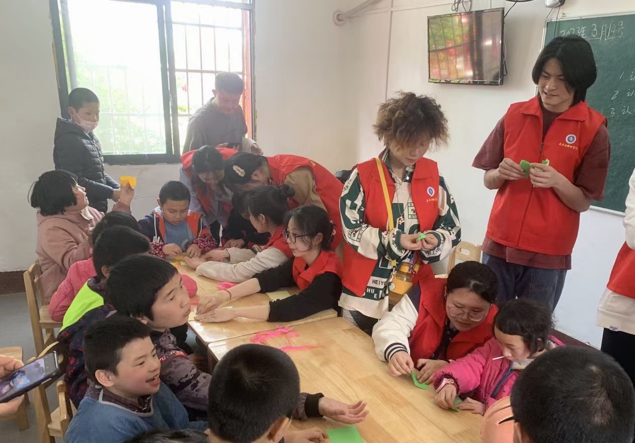永州星旺康复中心的儿童大多因为自身缺陷而敏感多疑,被称为“小星星”。活动过程中,志愿者通过做手势舞、唱儿歌、讲故事等活动,帮助“星星”孩子打开心扉。志愿者教孩子们做手工,和一起精美的手工花。