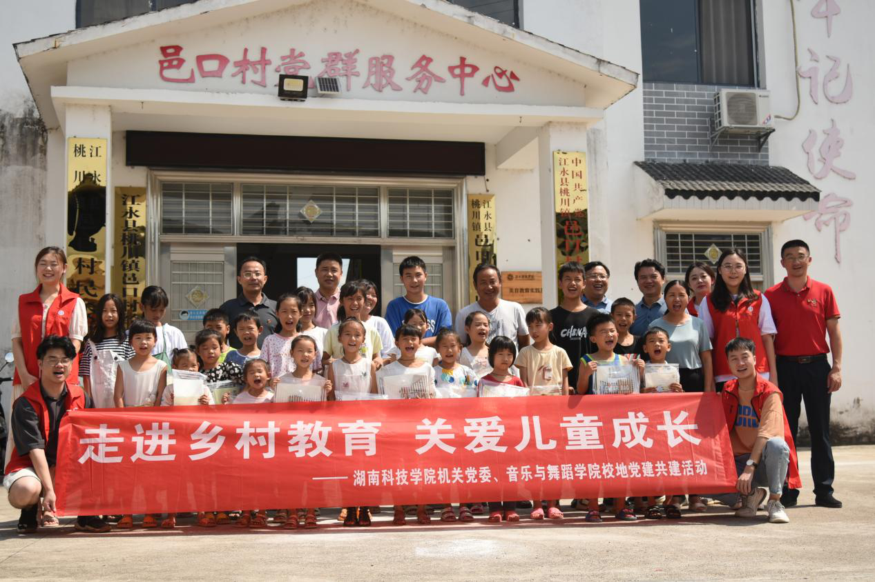 本网讯 7月30日—31日,机关党委和音乐与舞蹈学院组织师生党员、志愿者赴学校乡村振兴联点村——江永县桃川镇邑口村组织开展“走进乡村教育 关爱儿童成长”校地党建共建活动。