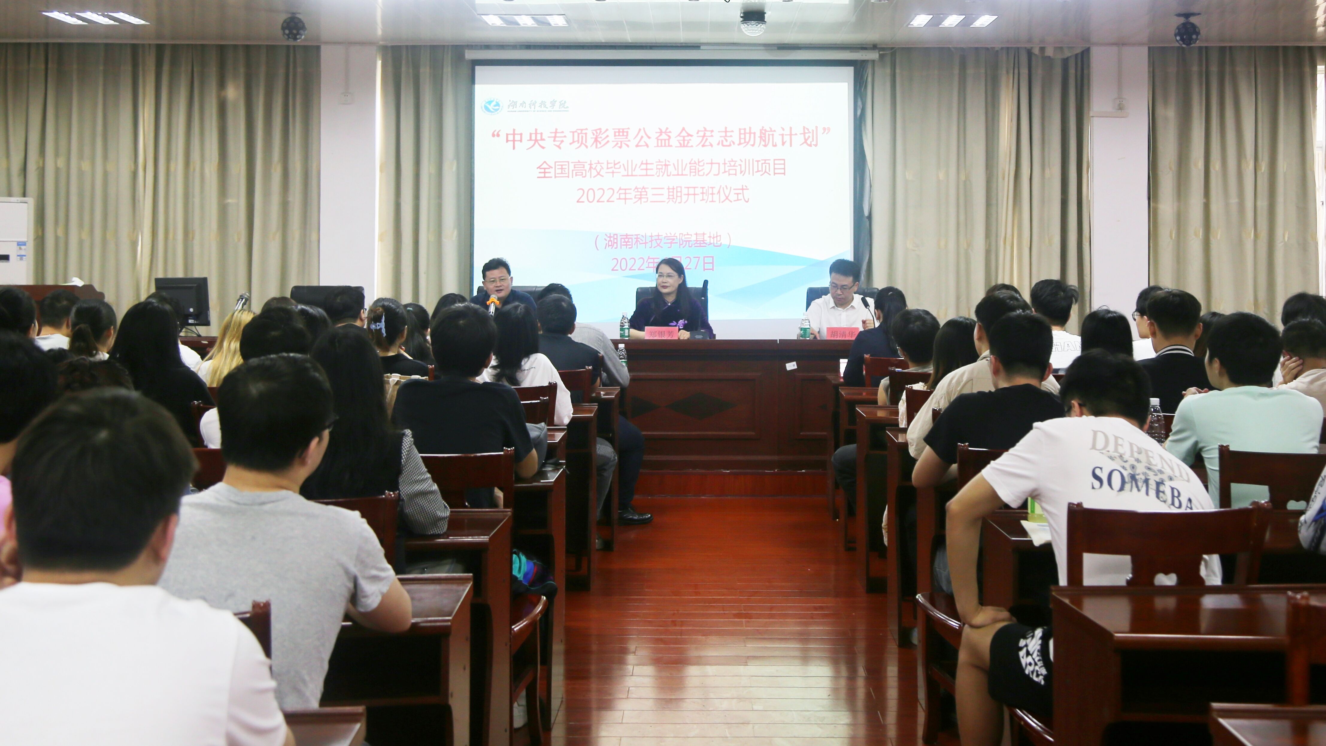 本网讯 4月27日上午,“中央专项彩票公益金宏志助航计划”全国高校毕业生就业能力培训项目九游在线学院基地2022年第三期开班。副校长郑银芳出席开班仪式并为毕业生授课,理学院党总支书记唐卫华、招生就业处处长(创新创业学院院长)胡清华、理学院党总支副书记欧阳素勤及理学院119名2022届毕业生参加仪式。