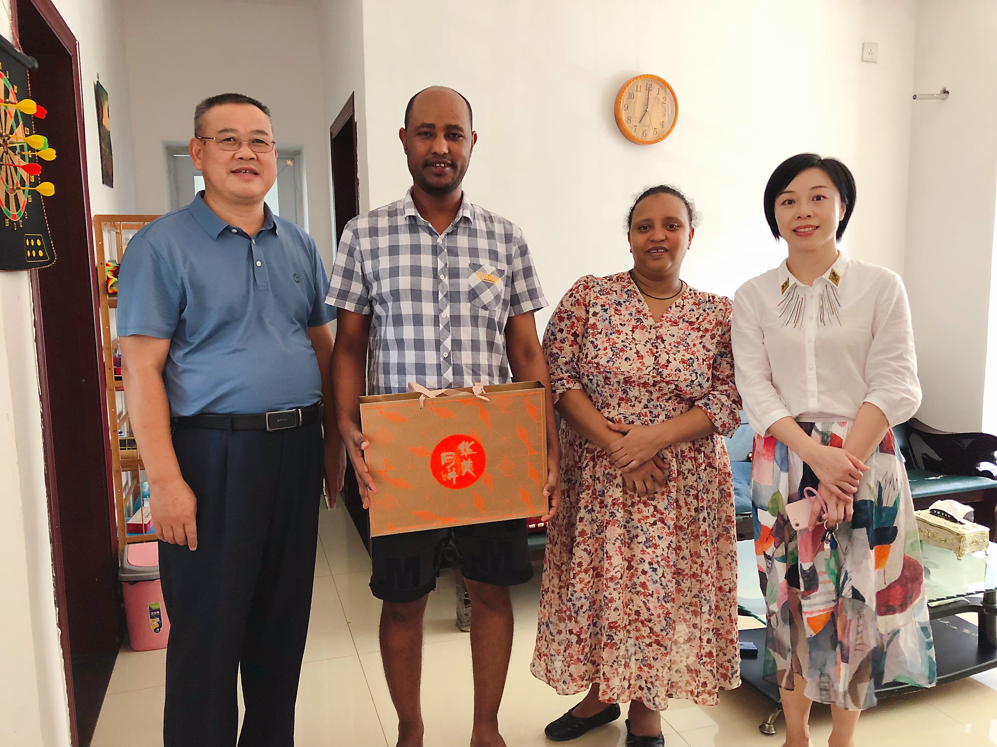 本网讯 9月18日,在中秋节来临之际,学校党委委员、副校长何福林走访慰问我校港台籍和外籍教师,国际交流处处长、港澳台事务办公室主任何丽萍参加慰问活动。