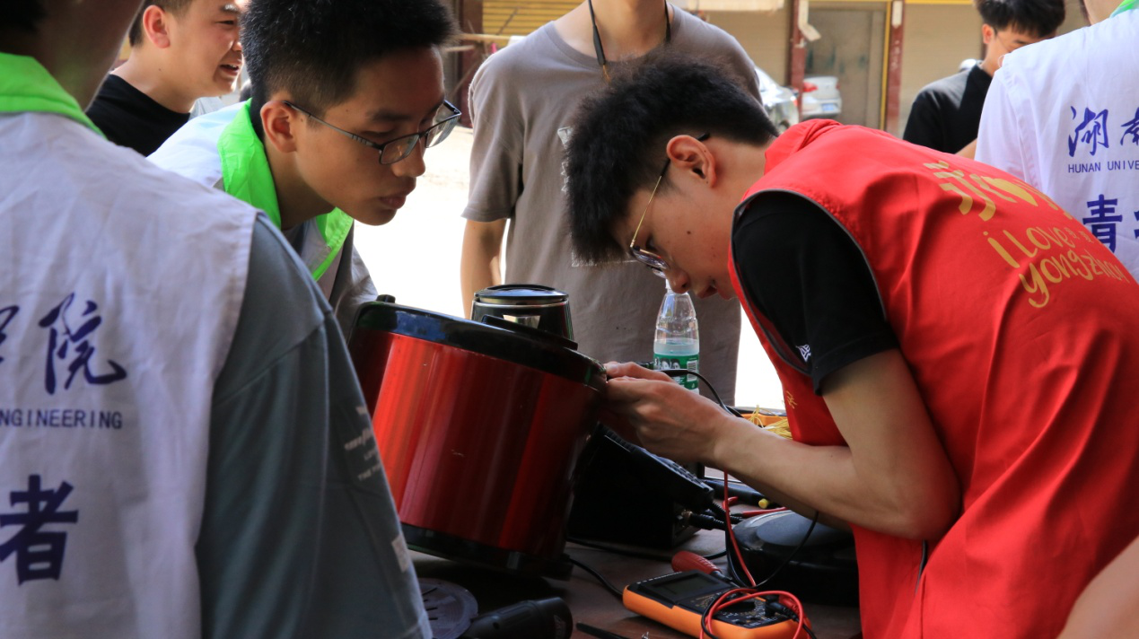 义务维修是该院长期坚持的一项特色活动,同学们通过利用在校学习的专业技能为广大群众服务,此行来到双牌县泷泊镇,志愿服务团帮助附近村民修理损坏的小家电。并面向广大村民开展的其他义务服务活动,为大家解决各种疑难问题。