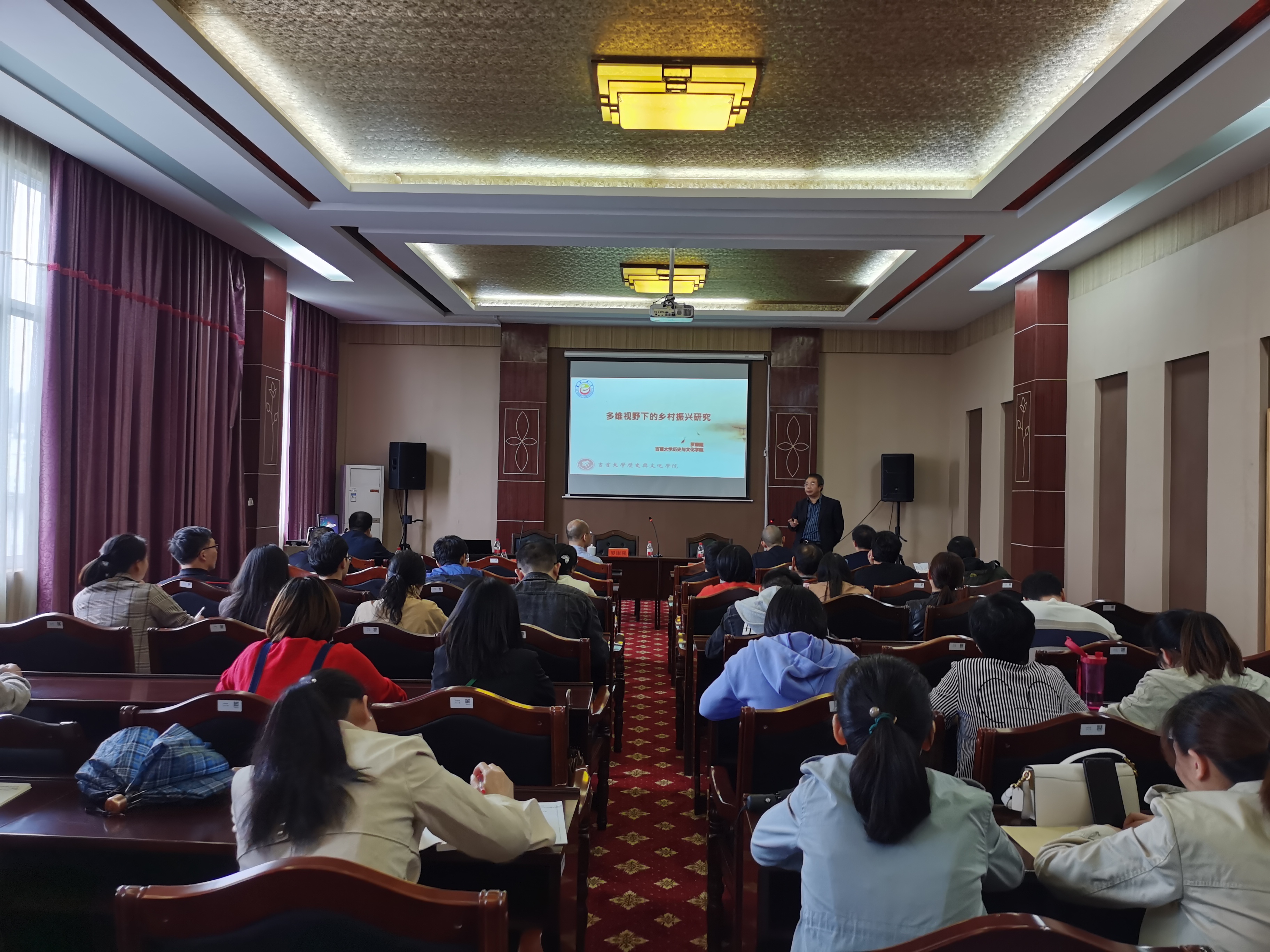 下午,罗康隆教授作了主题为“多维视野下的乡村振兴研究”的 讲座,罗康隆从三个视角对乡村振兴进行了解读:一是乡村振兴的实质是文化的振兴和文化自觉,是一个从文化自觉到文化自决的过程;二是乡村振兴是一个渐进的过程;三是乡村振兴是人文地产景史“神”的耦合适应过程。他还特别围绕“文化自觉”“平等对话”“全域参与”三个核心观点,进行了深刻而系统的阐述。