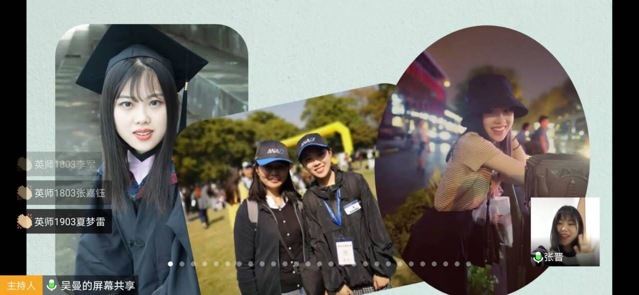 此次讲坛主题为“心之所向,素履以往”,外国语学院2019届优秀校友张晋和英语师范1602班班长刘嘉应邀分享。张晋是浙江工商大学日语笔译专业在读研究生,她分享了自己考研时的心路历程、学习经验以及读研生活的体会。她建议学弟学妹们探索适合自己的学习方法,争取做到高效率学习;勉励大家为了最初的梦想,坚持到底。刘嘉向大家分享了她今年的考研经历。她说是否要考研、考哪个专业、考哪个学校等方面都要认真结合自身情况来思考,要主动向老师请教;在备考过程中,要做好复习和心理上的双重准备。同学们积极踊跃地和两位学姐进行线上交流互动。