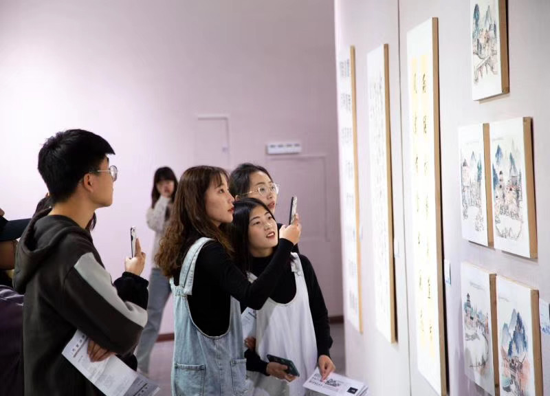 本次书画展作品取法多元,形式多样,既有传承,亦有创新,或舒展大方、清秀雅致,或苍劲有力,展示了七位博士扎实的基本功,吸引了大量的师生及社会书法爱好者前来参观。开幕式后,博士们还举办了精彩的“艺术与人生”专题讲座,与师生及社会书画爱好者分享从艺心得,进行互动交流。
