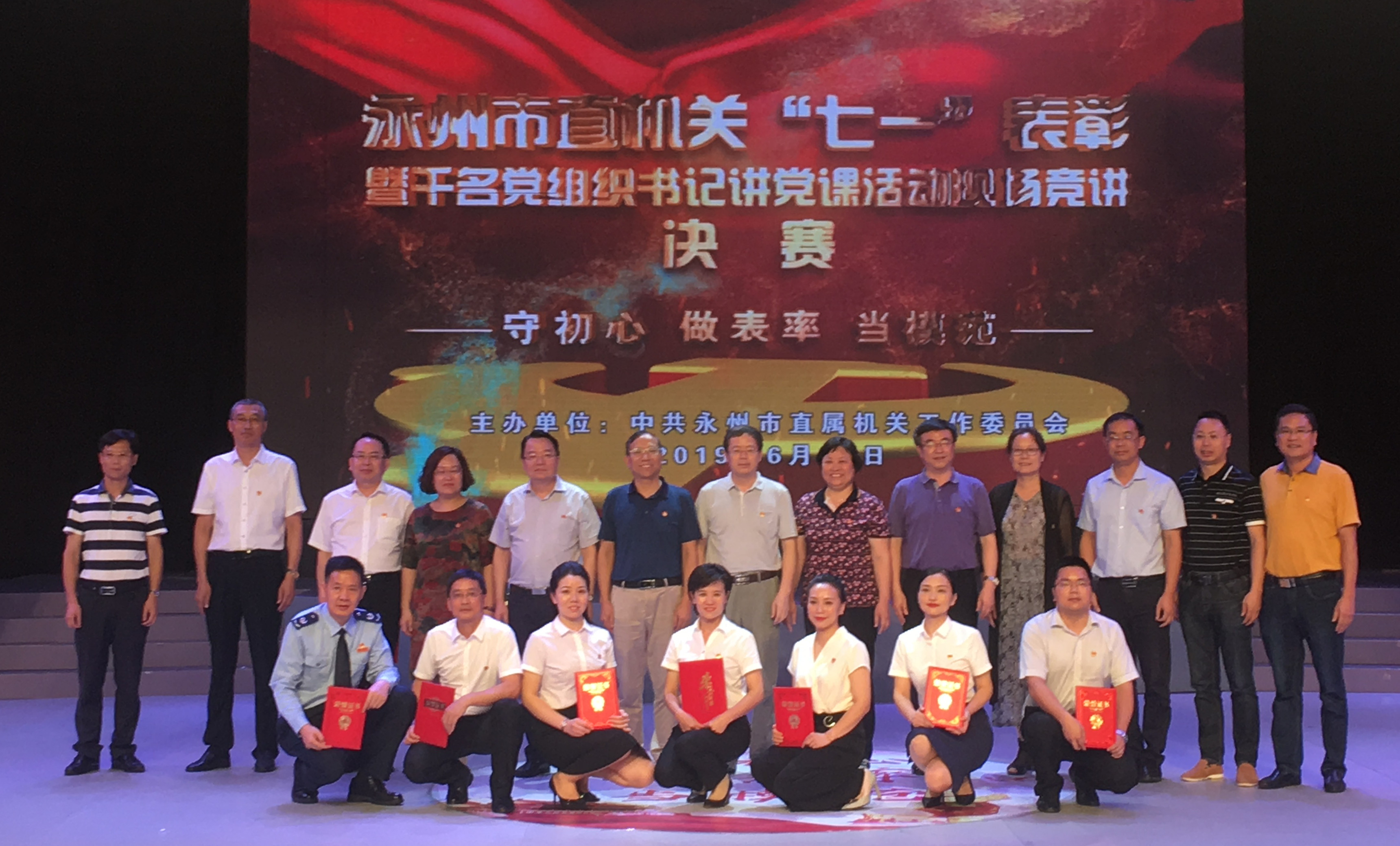 本网讯 6月25日上午,永州市直机关“七一”表彰暨千名党组织书记讲党课现场竞讲决赛及优秀党课评比活动在永州广播电视台演播厅举行,土木与环境工程学院党总支教工第三党支部郭华老师题为《坚守理想初心 争做有为青年》的党课荣获三等奖。