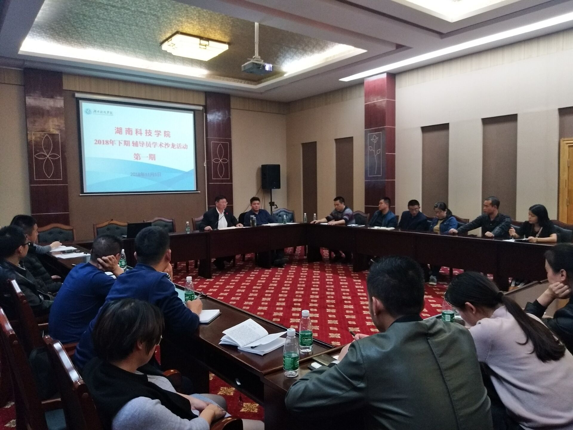 本网讯 11月5日晚,2018年第一期辅导员学术沙龙活动在行政楼八楼三会议室举行。各院党总支副书记、全体辅导员和学工部相关人员参加了活动。